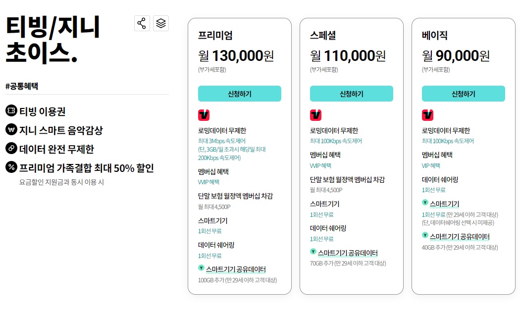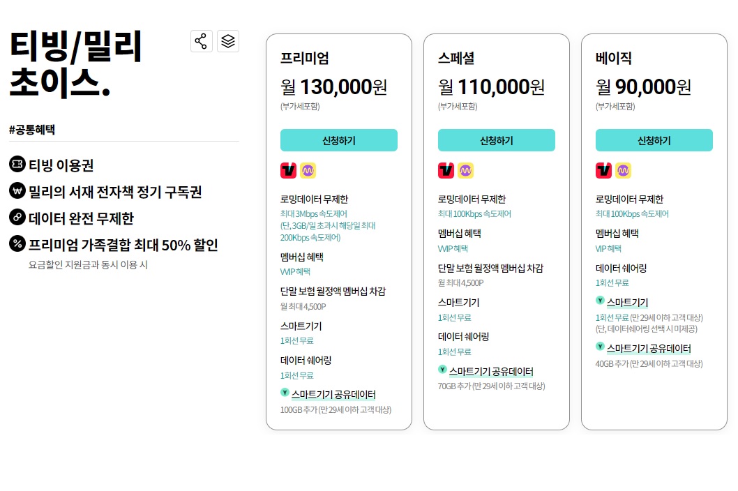 해당 결합 상품들은 티빙 이용권만 사용하기를 원하는 경우 저렴한 상품은 아닐 수 있다.
